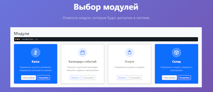 Здесь подключаются дополнительные возможности CRM: учёт денег, календарь, услуги, склад и другие расширения. Без этого шага система остаётся только «каркасом» из групп и полей