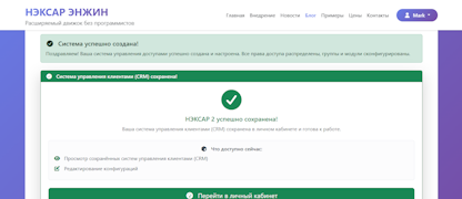 Здесь по шагам описано, как собрать свою CRM: от выбора сценария до настройки групп, полей, модулей и прав. После прохождения всех шагов вы сохраняете конфигурацию и при необходимости получаете готовый архив для развёртывания.