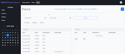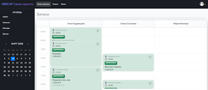 Модуль «Салон красоты» для НЭКСАР ЭНЖИН: календарь записей по мастерам, клиенты, услуги, статусы. Настройка в билдере, перенос перетаскиванием. Инструкция по настройке и использованию.